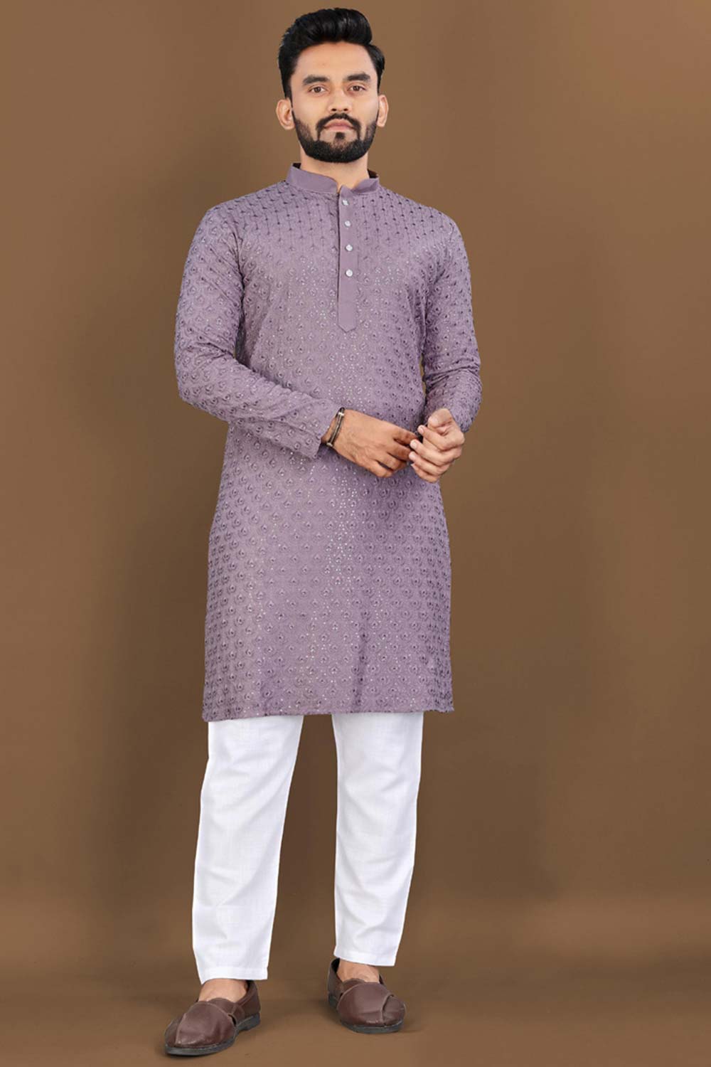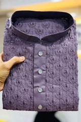 Violet Embroidered Rayon Kurta Pajama Set