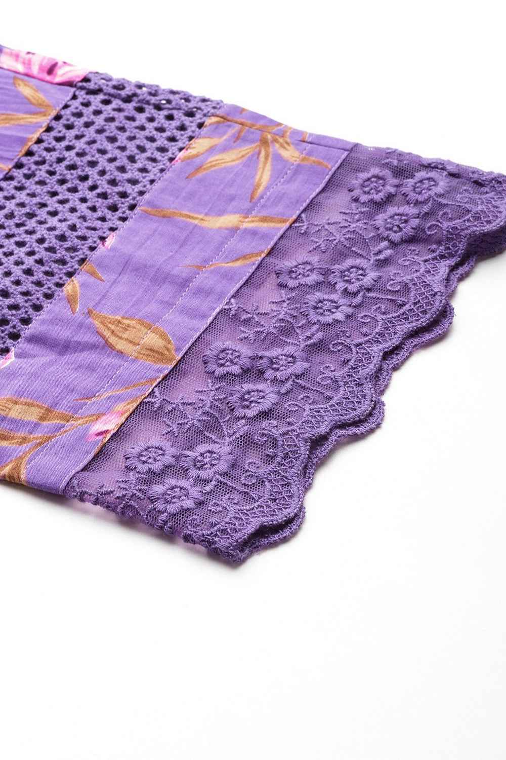 Violet Floral Print Pure Cotton Kurti Pant Set