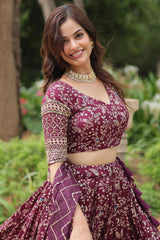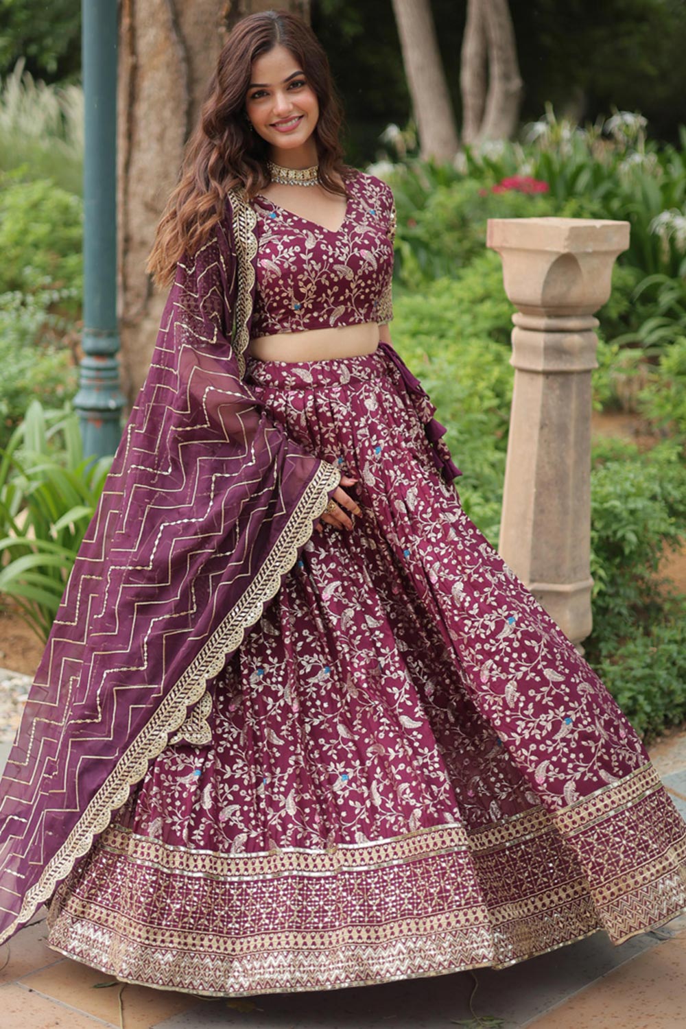 Violet Solid Embroidered Jacquard Lehenga Choli Set