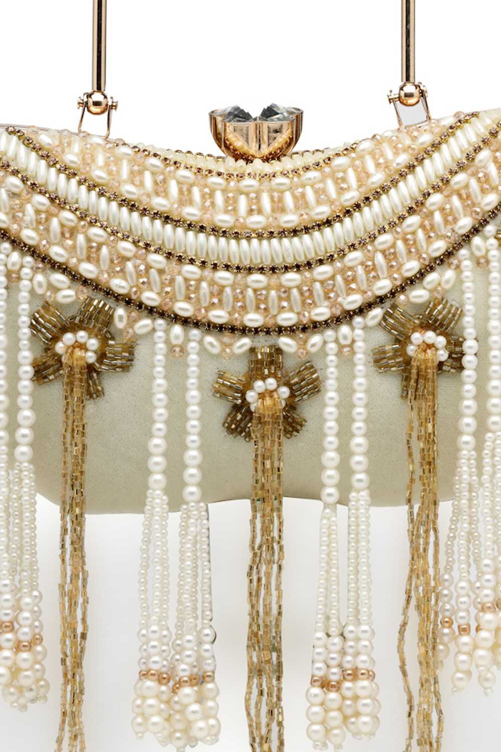 White Embellished Velvet Clutch