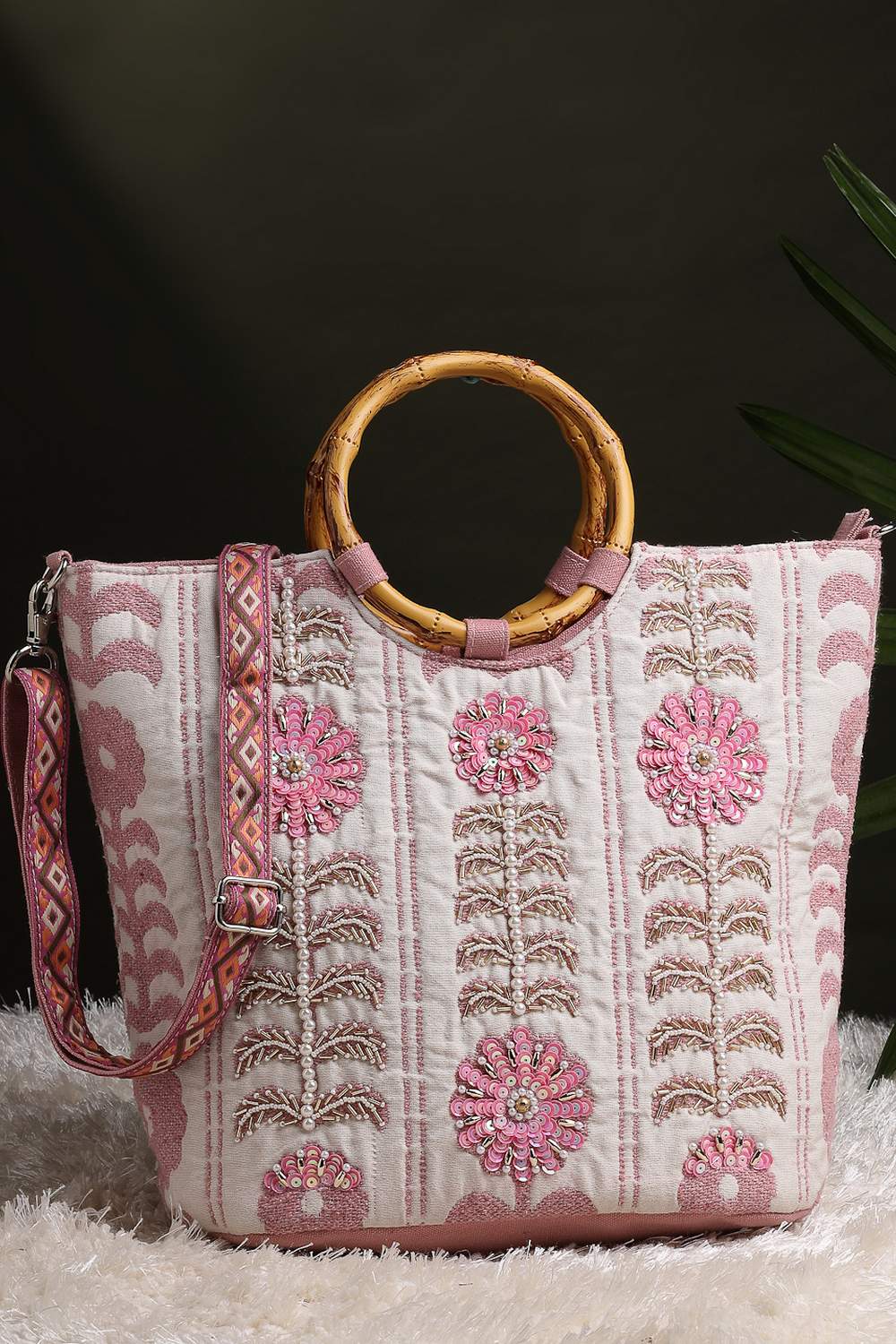 Stay stylish on the go with our Hand Bag a must-have bag for every fashionista. Crafted from premium Cotton and adorned with Floral Embellished this bag combines elegance and practicality. Whether for Festive or daily use, it’s your ultimate style