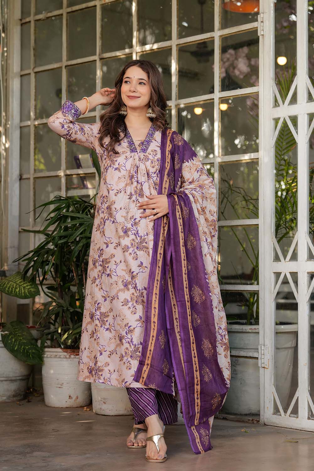 Step into effortless style with our Straight Cut Suit Set crafted for the modern woman who cherishes tradition. Made from soft Cotton it keeps you comfortable all day long. The Floral Printed design lends a touch of sophistication to your outfit. Perfect for Casual this salwar suit is a must-have for versatile styling options. Style it with minimalistic accessories and flats for a casual look or jewelry and heels for special events