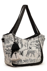 White Jacquard Cotton Tote Bag