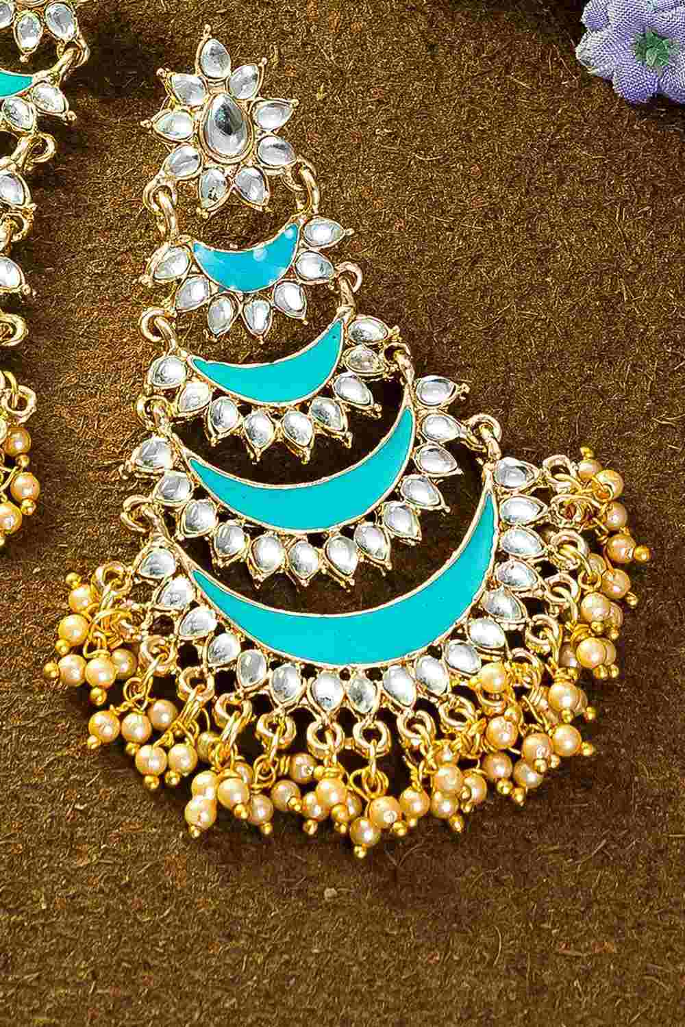 Women's Alloy Large Dangle Earrings In Gold And Blue