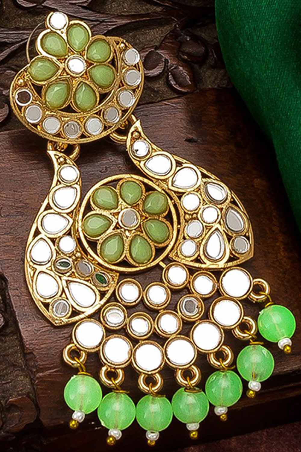 Women's Alloy Large Dangle Earrings In Gold And Green