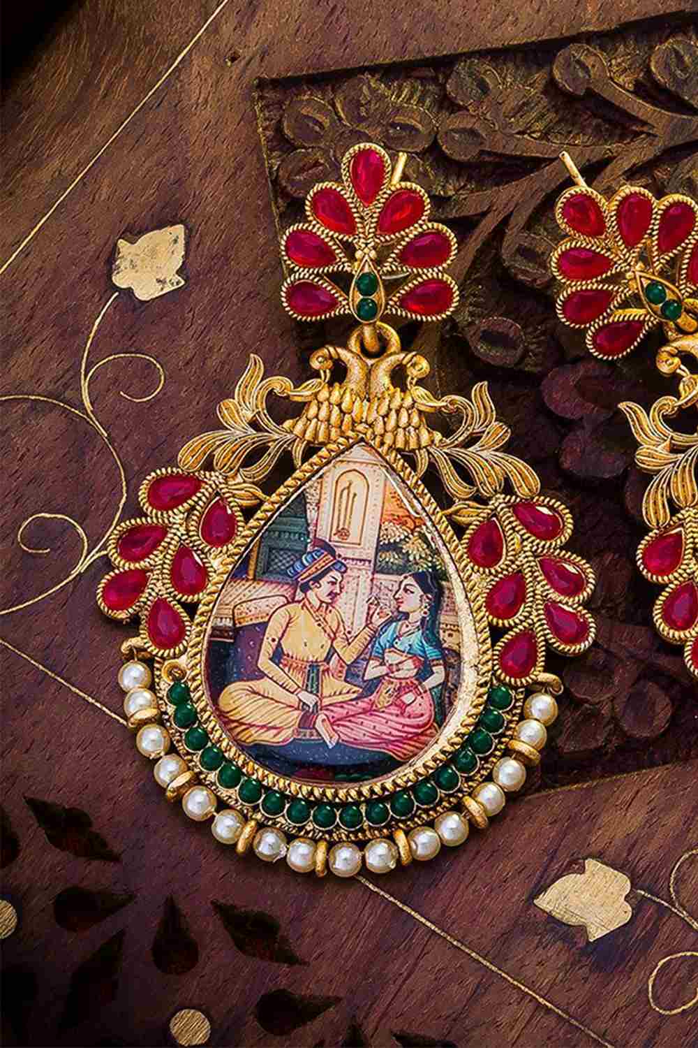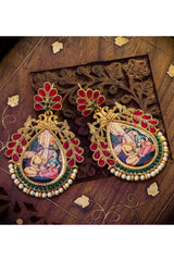 Women's Alloy Large Dangle Earrings In Green And Red
