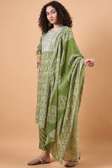 Embrace the freshness of nature with this captivating Green Cotton Printed Kurti Pant Set. Perfect for adding a touch of elegance and tranquility to your wardrobe, this set is ideal for everyday wear or special occasions.