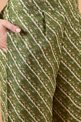 Women's Green Cotton Printed Kurti Pant Set
