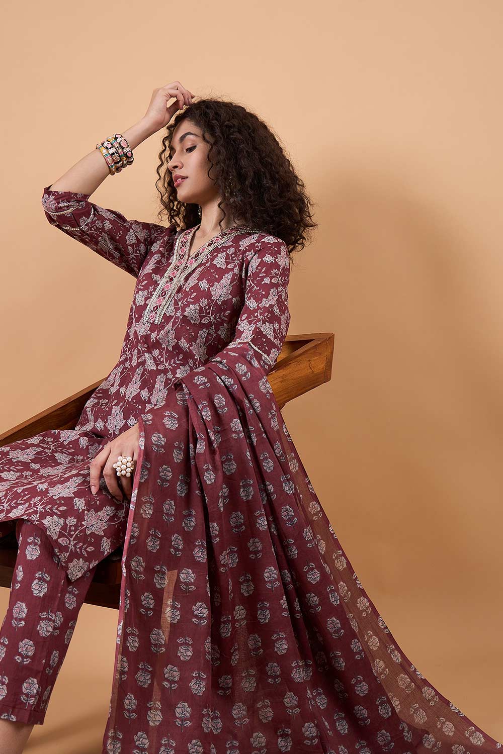 Step into timeless sophistication with this Maroon Cotton Printed Kurti Pant Set. The deep, rich maroon hue, paired with intricate prints, offers a classic and stylish look perfect for various occasions.