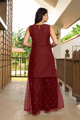 Maroon Resham Embroidery Cotton Straight Cut Kurti