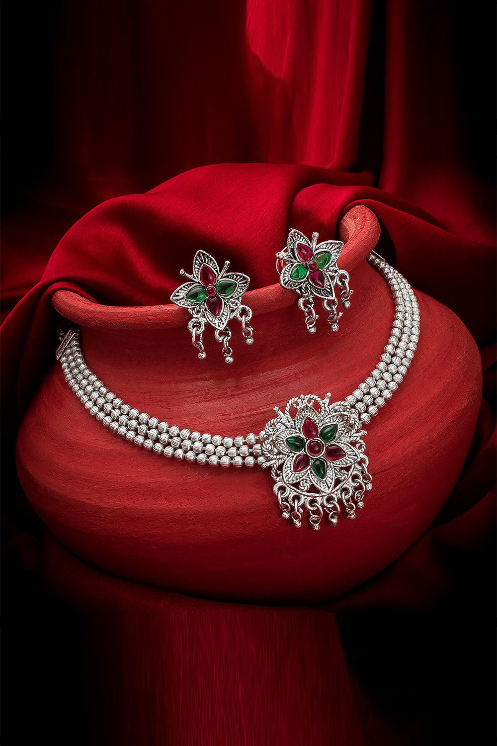 Women's Oxidized Necklace Set In Silver