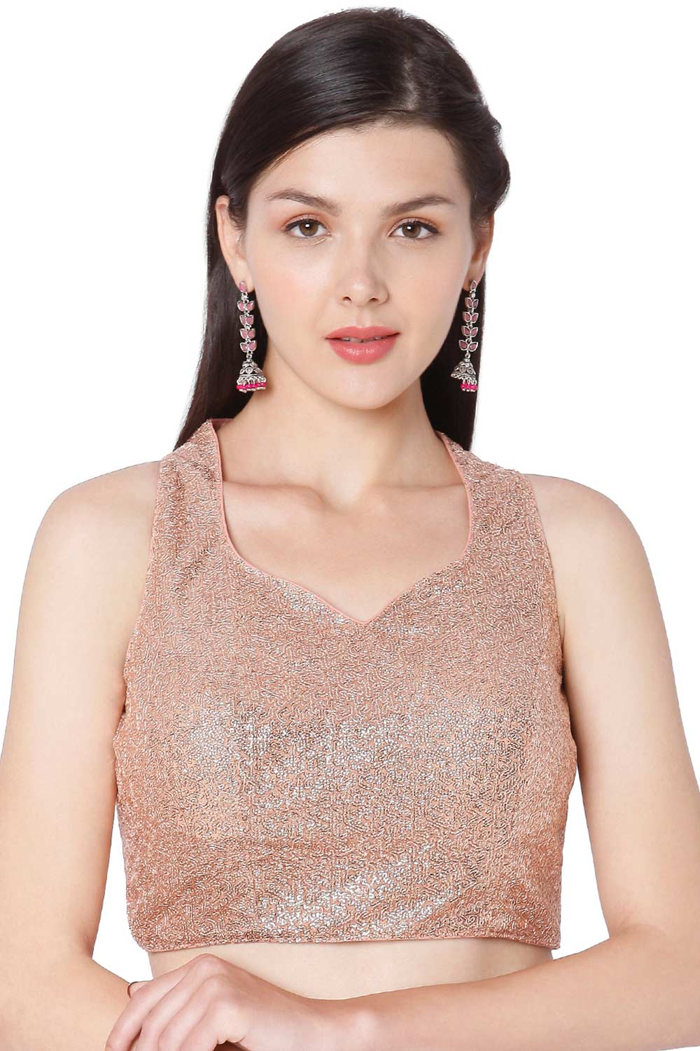 Peach Georgette Sequin Self Design Readymade Saree Blouse