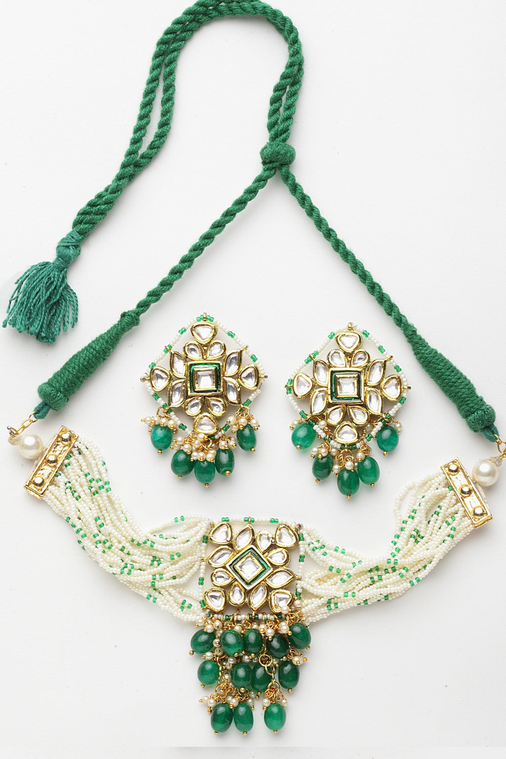 Women's Sterling Silver Choker Set In Green