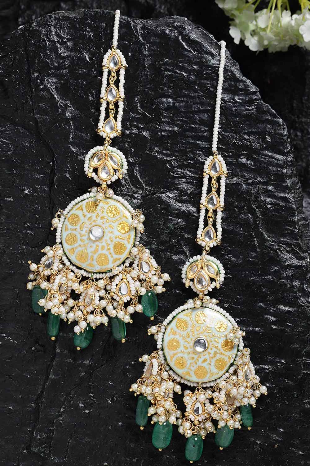 Women's Sterling Silver Drop Earring With Kanchain In Light Green