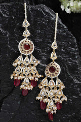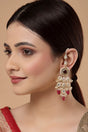 Women's Sterling Silver Kundan Dangle Earring With Kanchain In Maroon