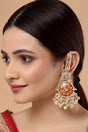 Women's Sterling Silver Kundan Drop Earring With Kanchain In Maroon