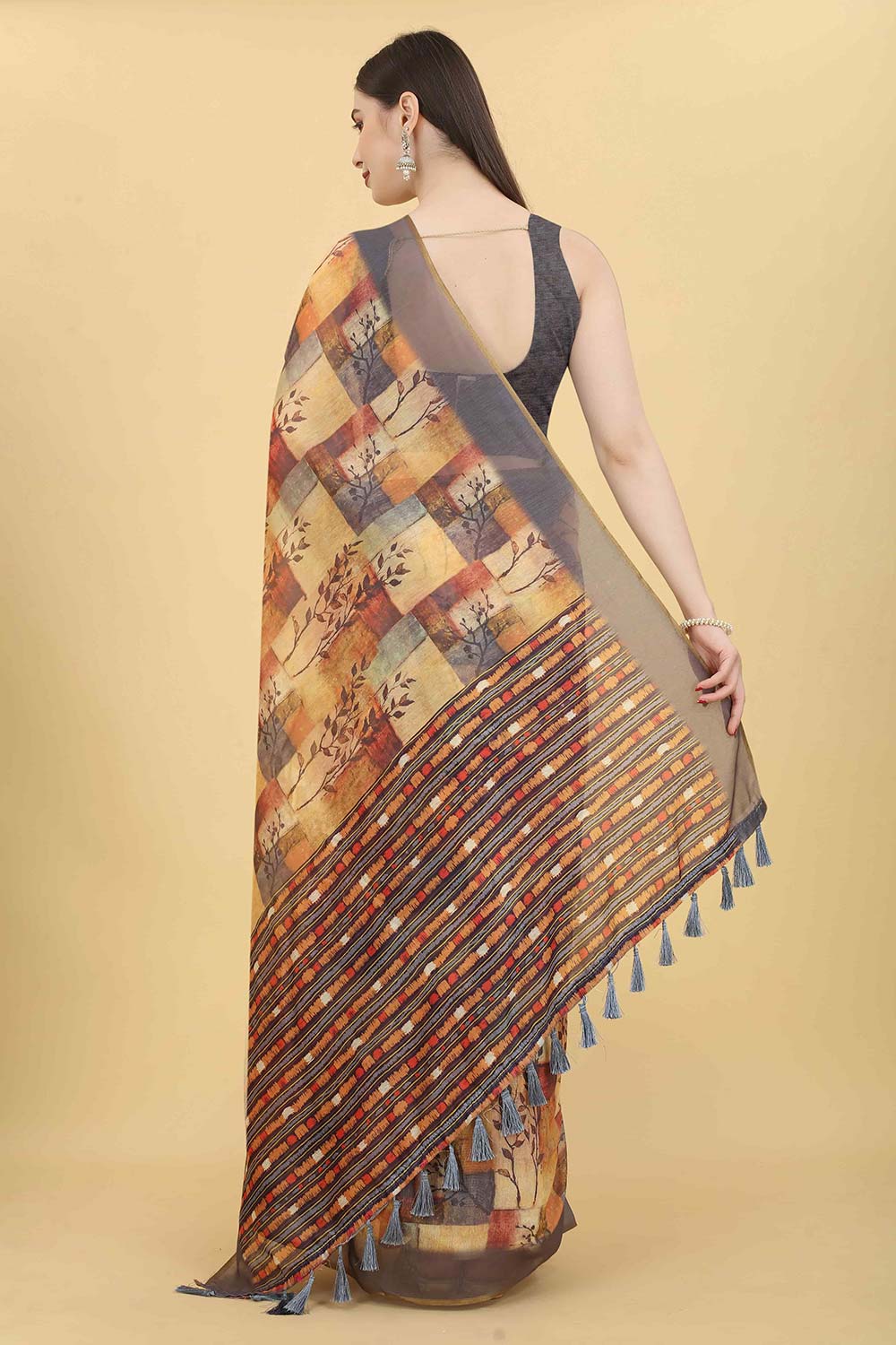 This printed cotton blend floral design saree with a very beautiful saree is definitely looks gorgeous on any type of women's skintone,saree has multiple shades with different patterns, you can wear it in any party or function.