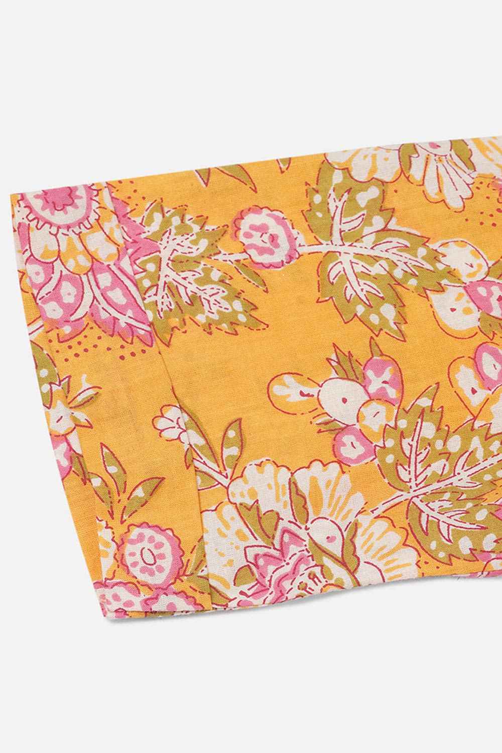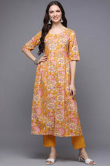 Yellow Cotton Floral Flared Fit Kurti