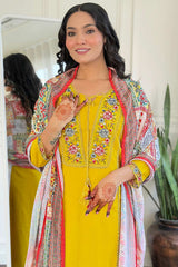 Stay stylish and comfortable with our Palazzo Suit Set designed for all-day elegance. Made with Viscose this set is perfect for easy movement and timeless appeal. The beautiful and intricate Embroidered elevate its design for Festivewear or daily wear, this kurti set is your go-to outfit. Pair it with elegant earrings and kolhapuri sandals or a heels for a traditional look or wedges for a modern edge