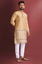 Experience timeless style with our Men's Kurta Set a perfect balance of tradition and modern sophistication. Made from Silk this Kurta set offers unmatched comfort and a refined look. Featuring amboj work and Floral it reflects a rich heritage with a modern touch. Designed for Festivewear, Haldi this outfit is perfect for special occasion or your celebrations. Complete the look with mojari shoes and a classic watch for a dapper appearance. Make every occasion special with the elegance of Men's Kurta Set