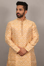 Yellow Geometric Silk Men's Kurta Set