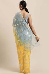 Elevate your wardrobe with our exquisite Saree a masterpiece crafted to add timeless elegance to your style. Made from Organza this saree offers a perfect mix of comfort and sophistication. Adorned with Gotta Patti it showcases intricate craftsmanship that speaks volumes of tradition and artistry. Perfect for Partywear this saree is a versatile addition to your collection, ensuring you stand out effortlessly. Pair it with elegant Jewelry, such as glamorous look. Add Clutches or Potli Bags and complete the ensemble with Wedges & Heels , making it a perfect choice for any event. Make a statement and embrace the elegance of Saree today