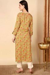This Yellow Rayon Floral Print Keyhole Neck Kurti is a timeless choice for any occasion. The intricate prints add a touch of sophistication to the ensemble, while the comfortable rayon fabric ensures effortless elegance and ease throughout the day.