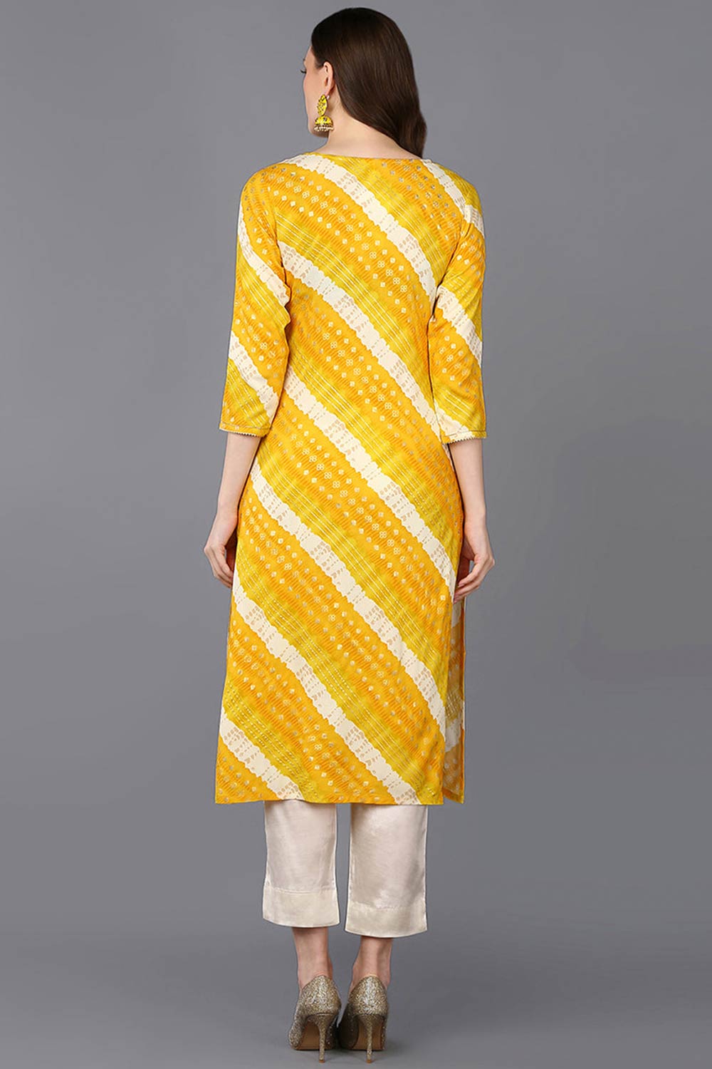 This Yellow Rayon Floral Print Round Neck Kurti is a timeless choice for any occasion. The intricate prints add a touch of sophistication to the ensemble, while the comfortable rayon fabric ensures effortless elegance and ease throughout the day.