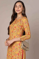 Yellow Rayon Floral Straight Kurti