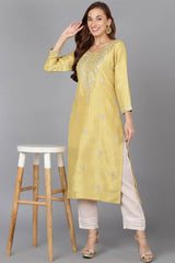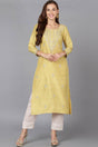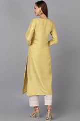 This Yellow Silk Blend Round Neck Kurti is a timeless choice for any occasion. The intricate prints add a touch of sophistication to the ensemble, while the comfortable rayon fabric ensures effortless elegance and ease throughout the day.