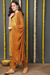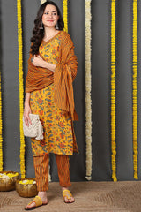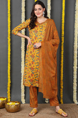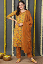 Yellow Viscose Rayon Floral Printed Straight Cut Suit Set